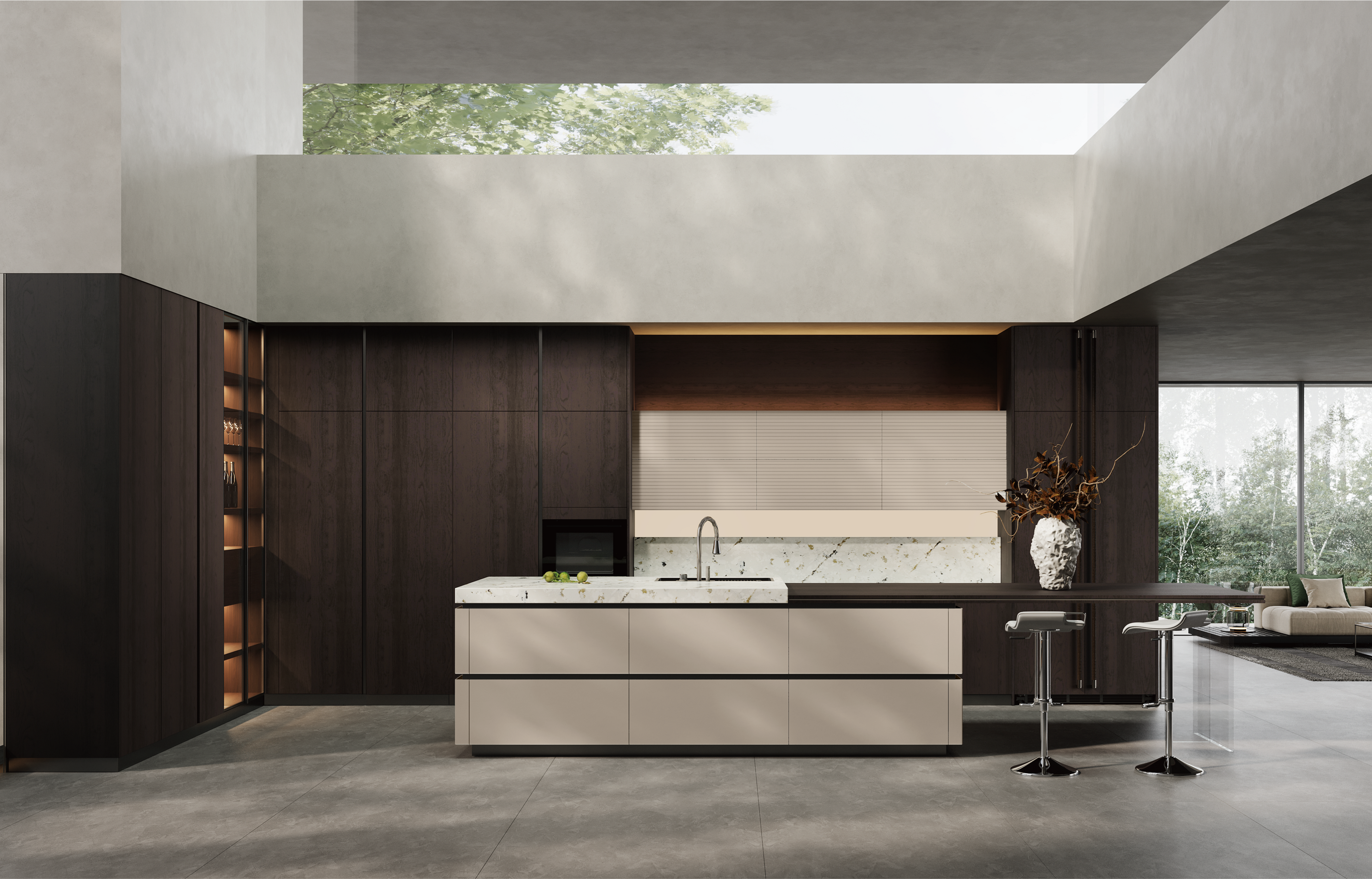 通过千亿国际厨柜量体裁柜,定制出适合主厨下厨的烹饪区和洗涤区的舒适高度。